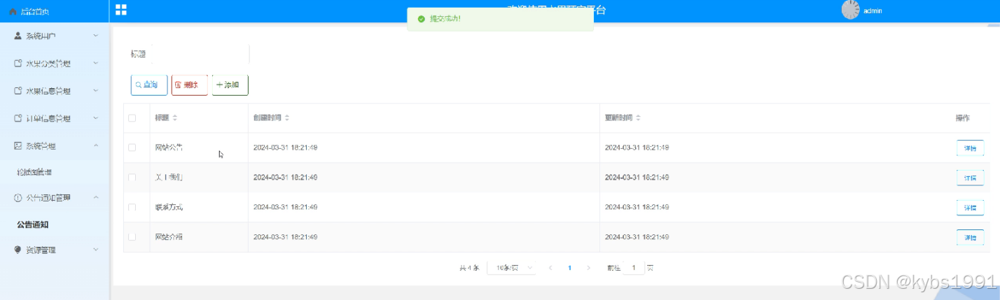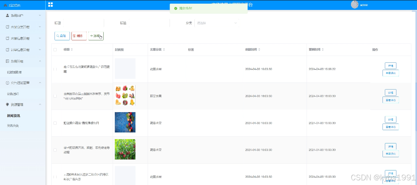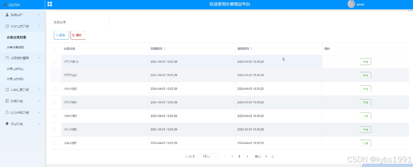 - 水果分类管理:管理员可对水果进行分类管理,包括添加新分类、编辑现有分类、删除不需要的分类,维护水果分类体系的清晰性和完整性,提升用户检索和浏览体验。