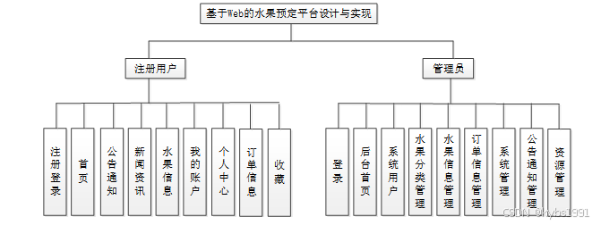 水果预定平台我划分为了用户管理模块和管理员模块这两大部分。
