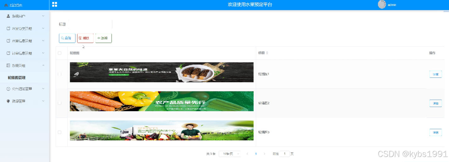 管理员负责管理网站首页的轮播图内容,包括添加、编辑、删除轮播图图片和链接,调整展示顺序和时长,提升网站视觉效果和用户体验,系统管理界面如下图5-8所示。