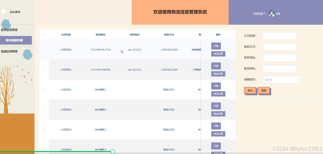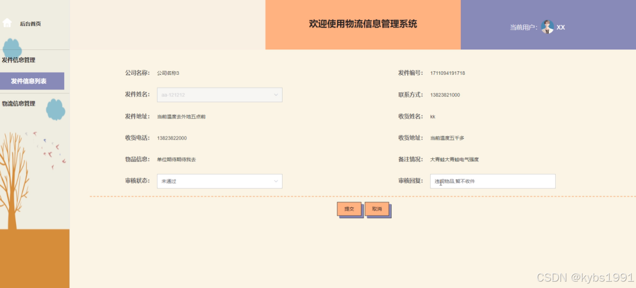 物流员工可以查看发件信息列表,还可以审核系统中的发件信息。界面如下图所示。