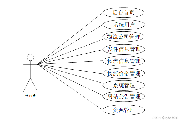 物流信息管理系统包含普通用户、物流员工和管理员三个角色划分,三大角色主要功能如下: