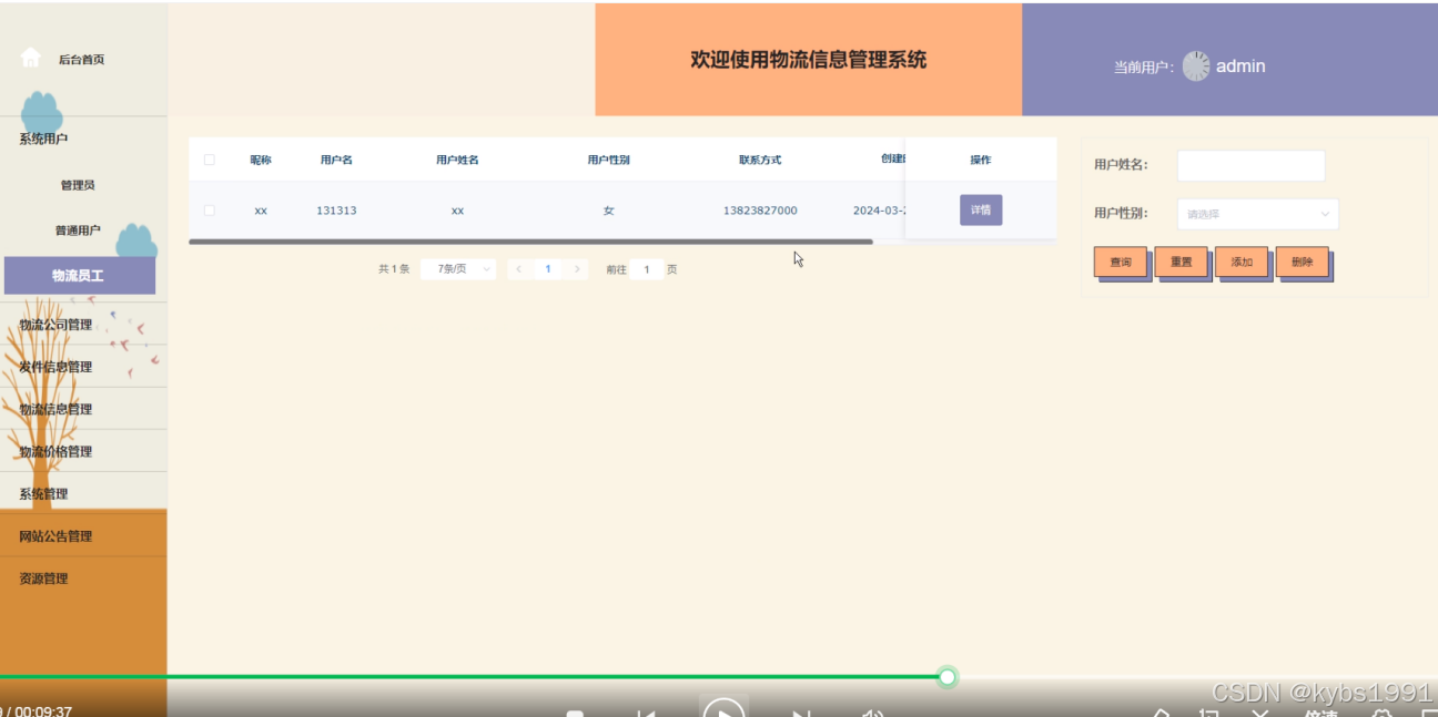 系统用户:管理员可以管理系统的用户,包括物流员工和其他管理员,进行用户信息的查看、编辑和删除。