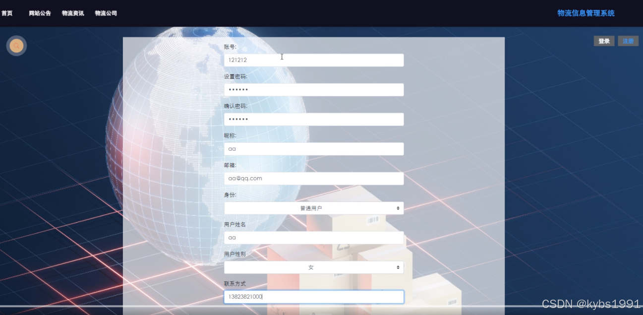 首页:一旦登录成功,普通用户应该能够进入系统的首页,获取最新的网站公告、物流资讯、推荐物流公司等信息。