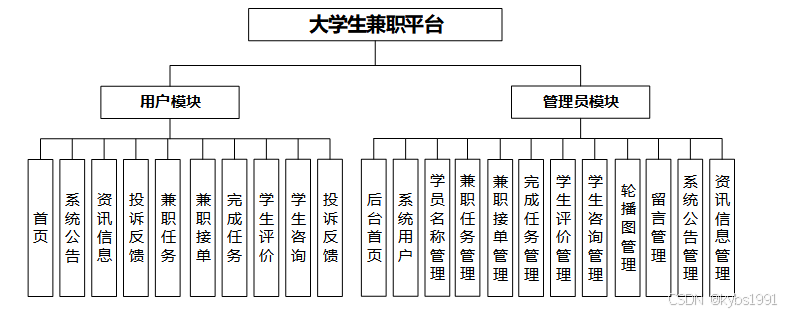 图3.1 大学生兼职平台功能模块图