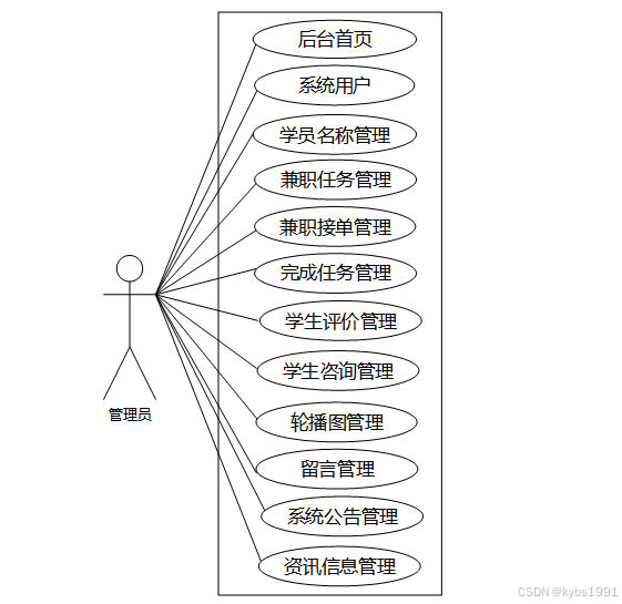 大学生兼职平台中管理员用例图如图2.2所示:
