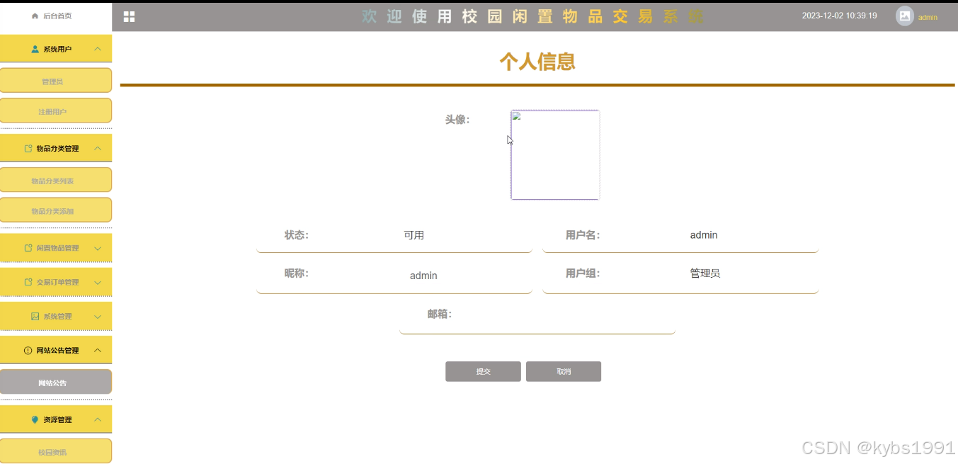 (5)商城管理:点击“商城管理”这个菜单,可以查看到闲置物品、分类列表、订单列表等功能,进行查询,添加、删除等操作。
