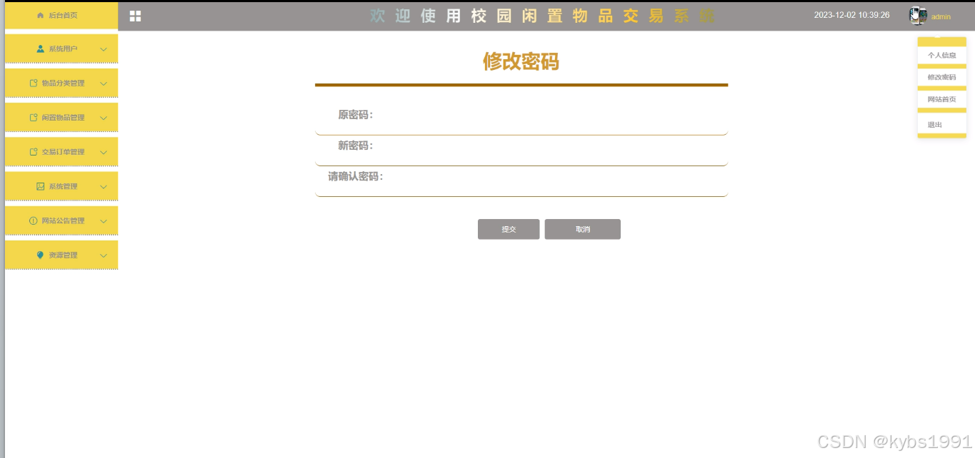 修改密码界面是一个重要的功能,它允许用户更改他们的登录密码以确保账户的安全性。修改密码界面如下图4-10所示。