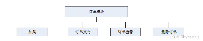 订单管理模块是系统中一个重要的功能模块,它涉及用户下单、支付、配送等流程。在订单管理模块设计中,我们将定义订单的数据结构、订单状态的转换规则,以及订单处理的具体流程和相关操作。其模块和功能结构如下图所示。