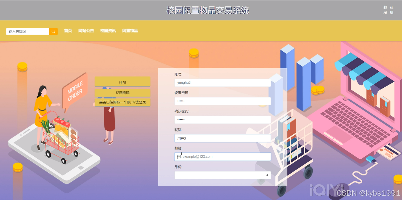 (1)用户注册登录:用户注册为用户后再登录校园闲置物品交易系统,可以对个人信息进行增删改查,比如修改个人资料,修改密码等。