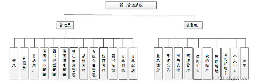 图书管理系统是中需要存储不少图书信息,其模块功能结构,具体的结构图如下: