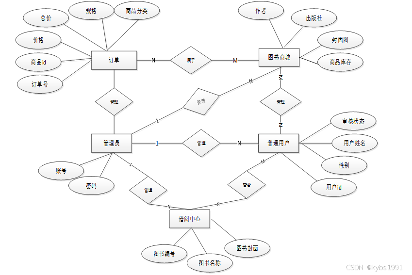 下面是整个图书管理系统中主要的数据库表总E-R实体关系图。