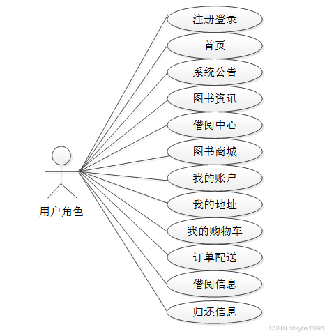 通过2.3功能的分析,得出了本图书管理系统的用例图: