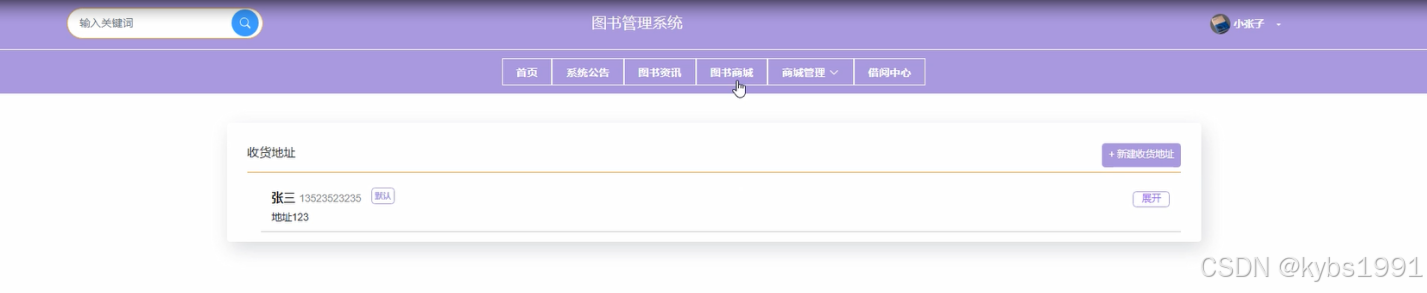 (7)收货地址:点击“商城管理”中“我的地址”按钮的时候就会显示出自己的收货地址信息,支持对收货地址的增删改查操作。