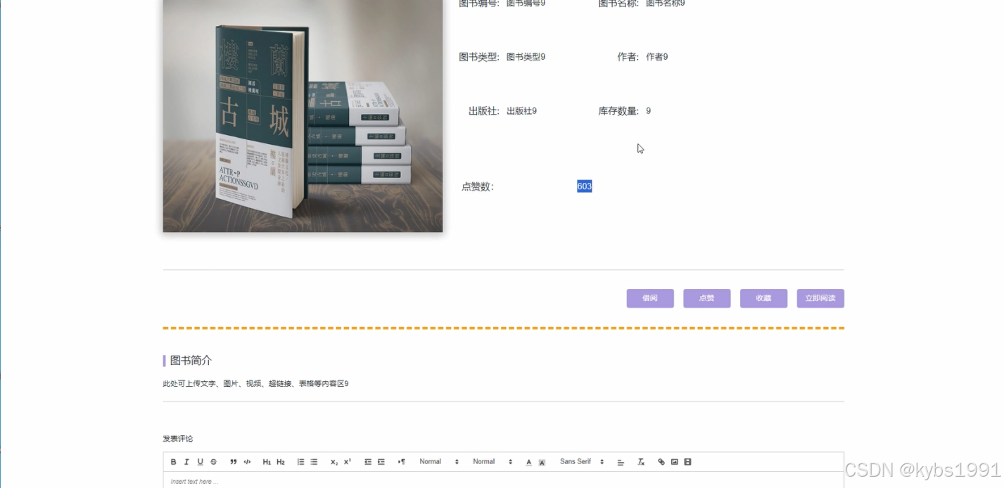 图书管理系统中的管理人员是可以对图书管理系统内的发布的图书进行维护和管理的,支持增删改查操作。界面如下图4-15所示。