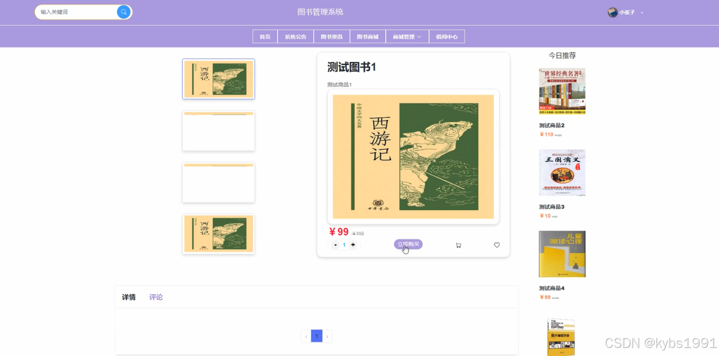 (2)用户查看图书:用户进行图书信息的阅览,通过发现喜欢的图书后可以加购+购买+评论+收藏。