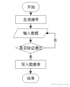 用户成功登入系统后就能够实现增加数据的操作,增加数据的编号由系统生成,用户不能随意填写,除了编号以外,其他增加信息用户自己填写,填写后的信息需经过系统验证,验证通过后即可完成数据新增,数据新增的流程图如下图3-1所示。