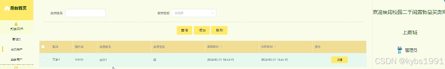 系统用户,在系统用户管理页面中可以对前台注册的会员用户、卖家用户以及管理员进行维护管理,如图5-10所示。