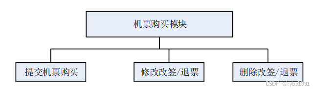 航空票务管理系统最重要的一个功能就是购买,其模块功能结构,具体的结构图如下: