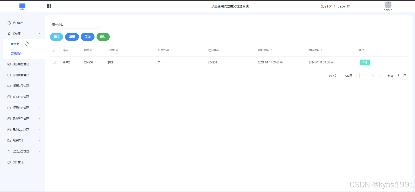 - 系统用户管理:管理员可以对航空票务管理系统中的管理员和前台注册的用户进行增删改查。