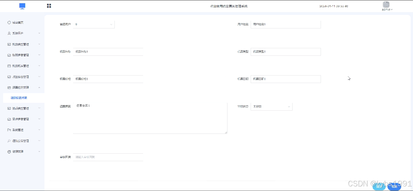 The aviation ticketing management system developed this time has implemented functions such as user management, flight information management, ticket type management, ticket purchase management, ticket change information management, refund information management, attraction type management, attraction information management, system management, notification and announcement management, resource management, and administrator management. The system uses MySql, the king of relational databases, as its database to effectively store and backup data securely, ensuring data reliability. And the program also has all the functions required by the program, greatly improving both operability and security, enabling the aviation ticketing management system to go from concept to reality, and truly improving people's information processing efficiency.