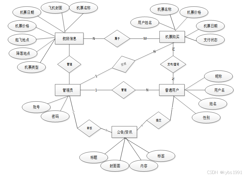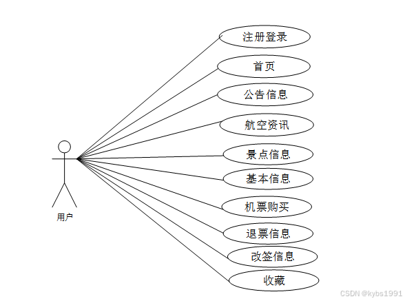 This aviation ticketing management system is divided into two permissions: administrator and user. The administrator can manage the basic information content of users, flight information and attraction information, and can communicate with users. Users can view flight information, view announcements, and view administrator reply messages.