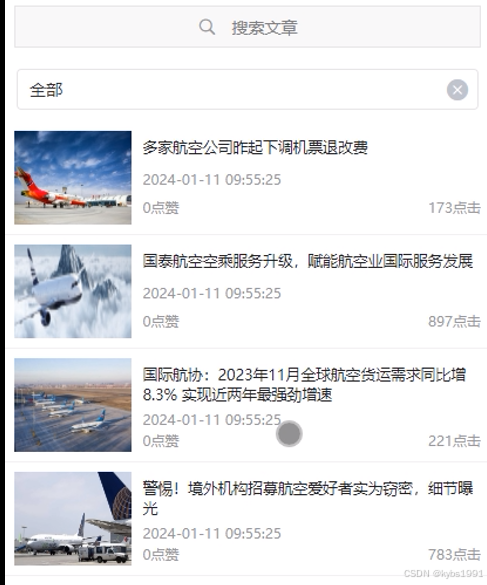 (3)航空资讯:用户可以查看系统中的航空资讯信息,在查询到自己想要的资讯时,可进入查看详细的介绍,在资讯详情这个界面,同时支持用户对喜欢的资讯信息进行收藏、点赞以及评论的功能。