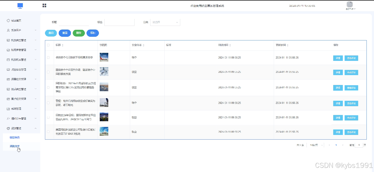 (11)资源管理:管理员可以对航空票务管理系统前台展示的航空资讯以及资讯所属的分类进行管控。