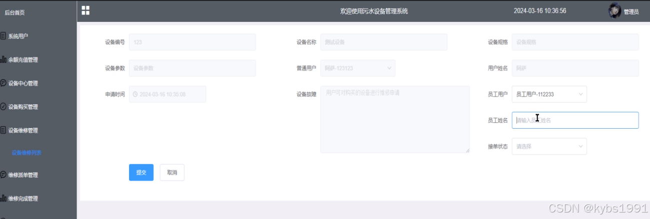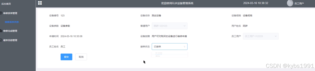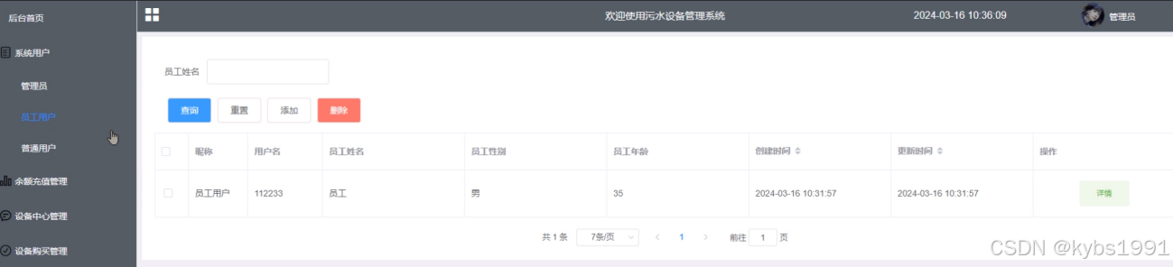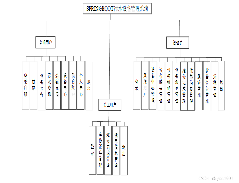 SPRINGBOOT污水设备管理系统包含普通用户、员工用户、管理员三个角色划分,每个角色对应的主要功能如下: