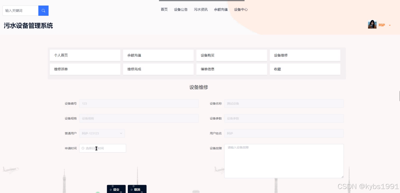 图5-7设备维修申请界面图