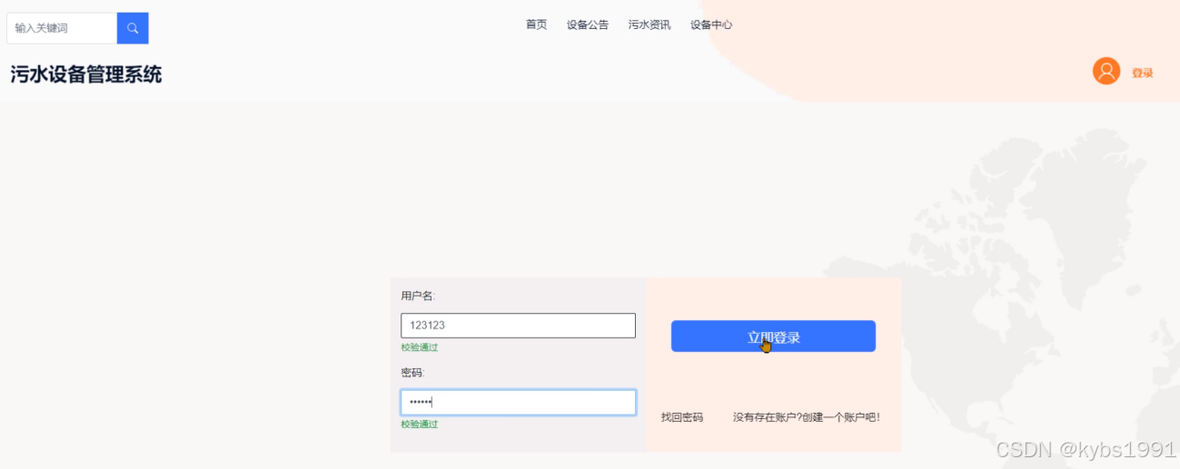 (2)用户登录:点击“登录”按钮,输入用户名以及密码登录系统,登录时前端会自动校验用户名与密码,输入正确登录成功,输入错误会有提示信息。
