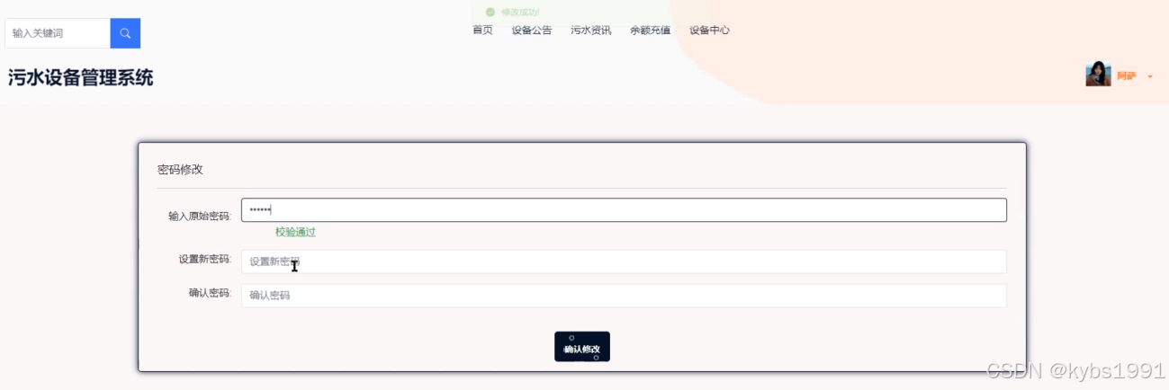 我的账户:包含个人资料以及修改密码,个人资料展示个人详细信息并可以进行修改,例如修改头像,昵称、邮箱、性别、年龄以及修改密码,密码修改如图5-3所示。