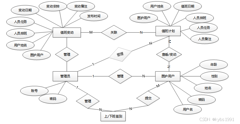 下面是整个医院值班系统中主要的数据库表总E-R实体关系图。