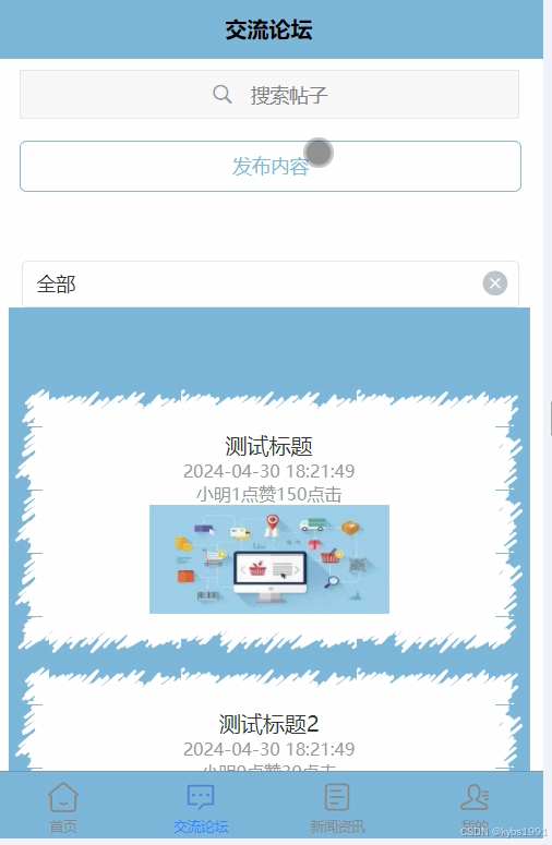(5)新闻资讯:当用户点击“新闻资讯”这一菜单按钮,会显示管理员在后台发布的所有的新闻资讯,可以查看详情,进行收藏、点赞、评论等;
