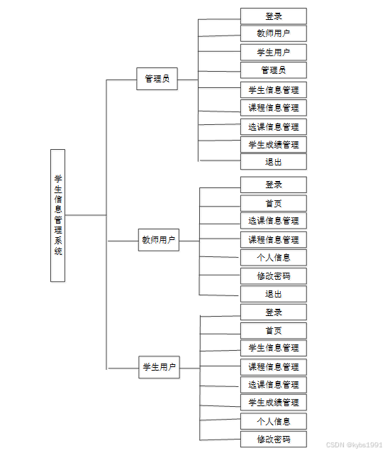 学生信息管理系统我划分为了学生用户管理模块、教师用户模块和管理员模块这三大部分。