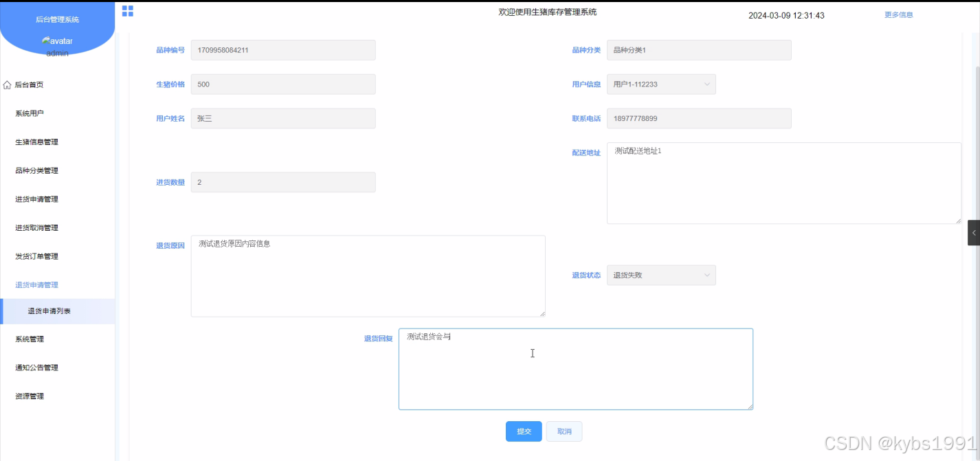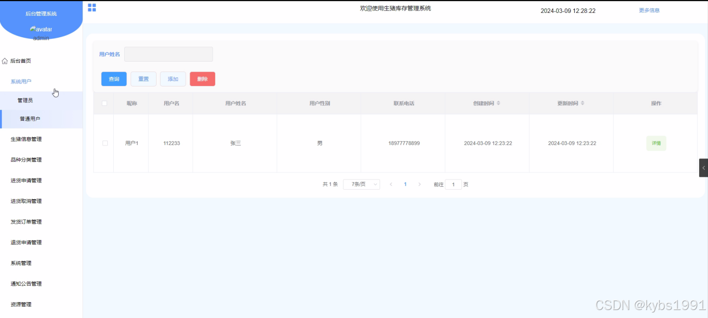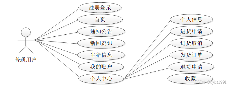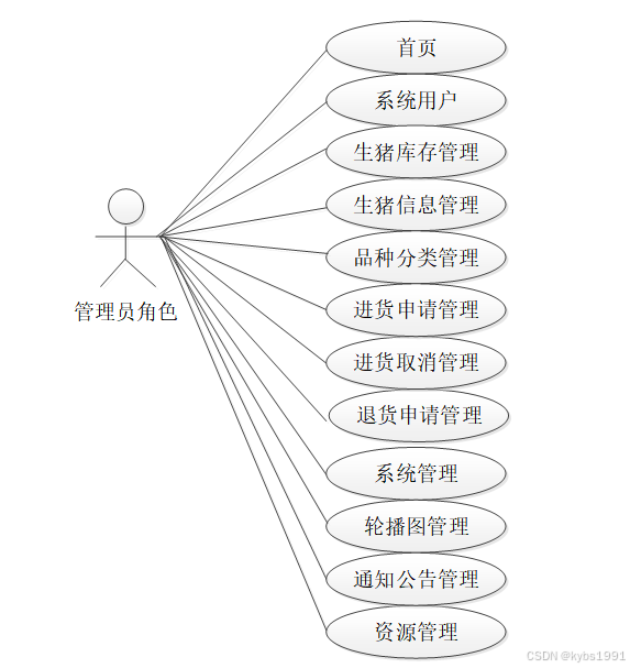 生猪库存管理系统我划分为了前台和后台两大部分,包括普通用户、和后台管理员二大角色。