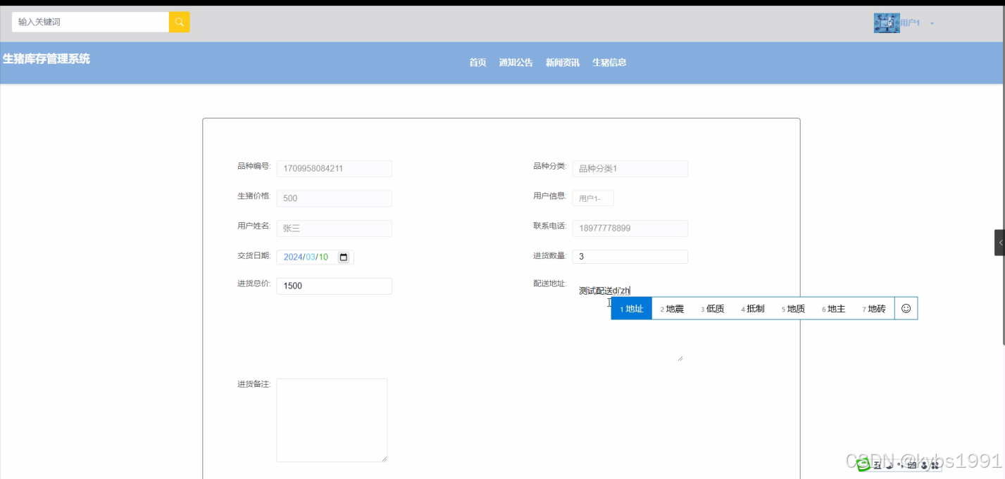 - 生猪信息管理:管理生猪相关信息,包括生猪类型、数量、供应商信息等。