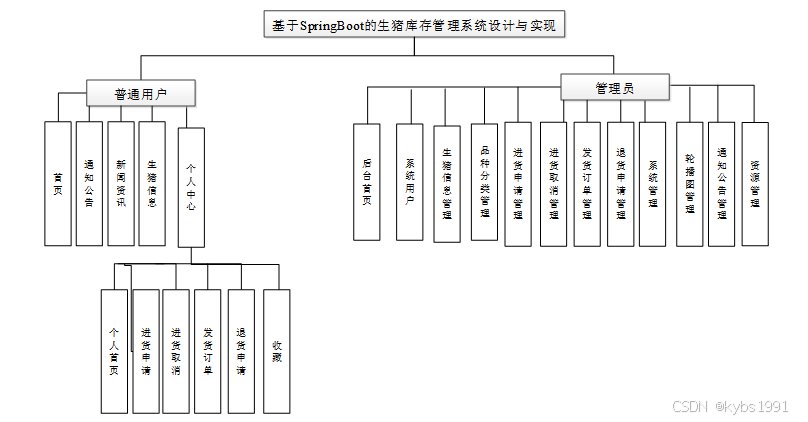 生猪库存管理系统是中需要存储不少商场信息,其模块功能结构,具体的结构图如下: