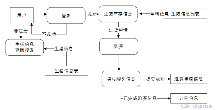 开发生猪库存管理系统最主要的一个目的就是实现普通用户对生猪信息购买的提交,图2-5就是系统的数据流图。