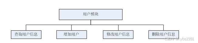 本系统的用户包括前台和后台两种用户,模块的功能基本是相同的,前台用户比后台多了一个注册功能,所以以用户模块的结构图为例进行分析,用户模块结构图为例进行分析,如下图:
