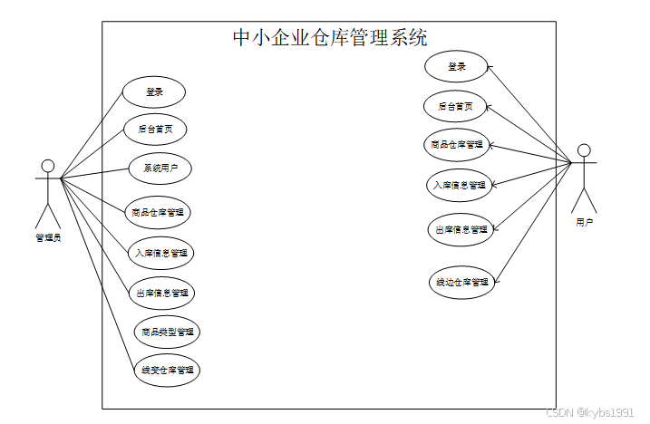 本中小企业仓库管理系统分为两张种用户,普通用户和管理员,中小企业仓库管理系统的总体用例图如图2-2所示。
