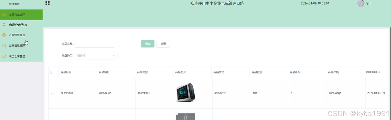 图4-3 商品仓库管理界面图