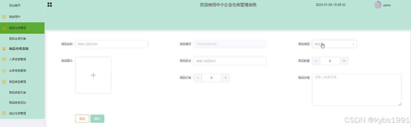 商品仓库添加界面测试: