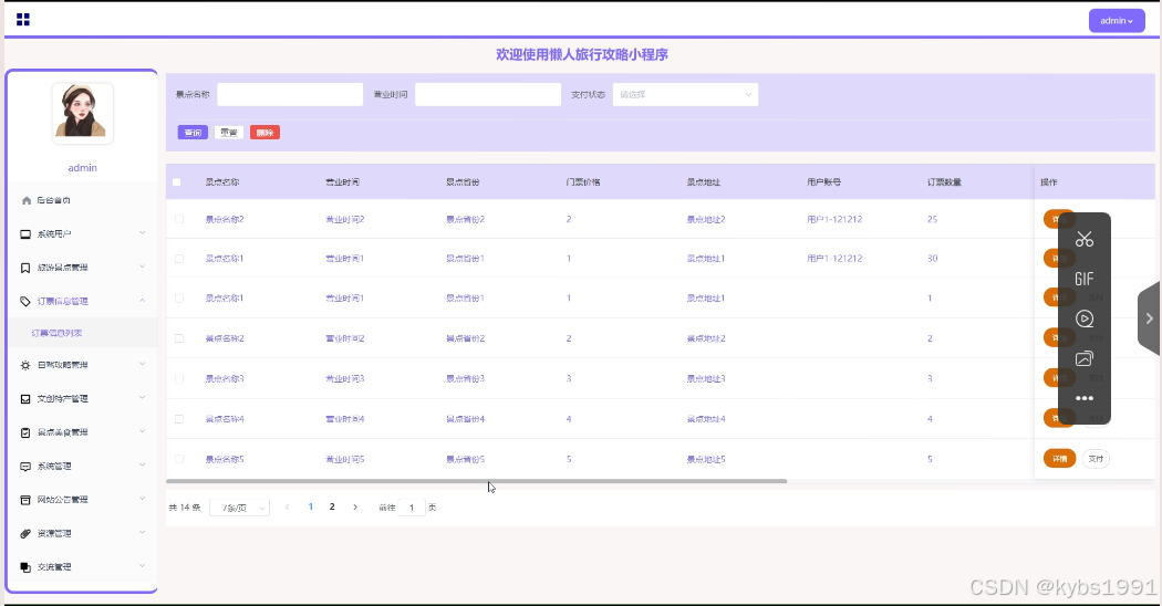 (2)系统用户:管理员可以对系统用户(旅游用户、管理员)信息进行增删改查。