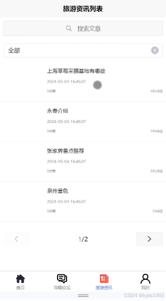 (4)旅游资讯:用户可以查看系统所有旅游资讯,可以查看某一资讯的详情,可以对资讯信息进行点赞、收藏、发表评论操作。