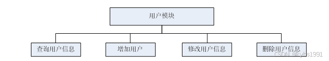 本系统的用户包括管理员和旅游用户。两种用户模块的功能基本是相同的,用户比企业、管理员多了一个注册功能,所以以用户模块的结构图为例进行分析,用户模块结构图为例进行分析,如下图: