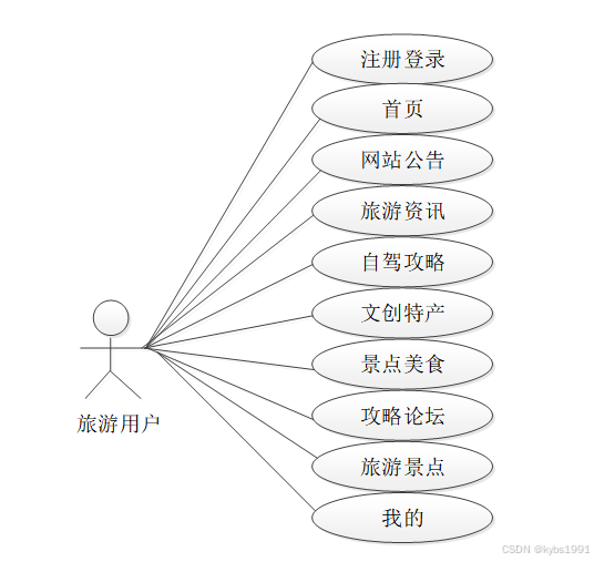 图2-4 懒人旅行攻略小程序旅游用户角色用例图
