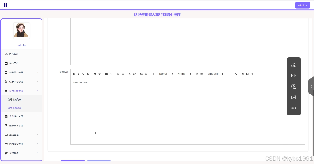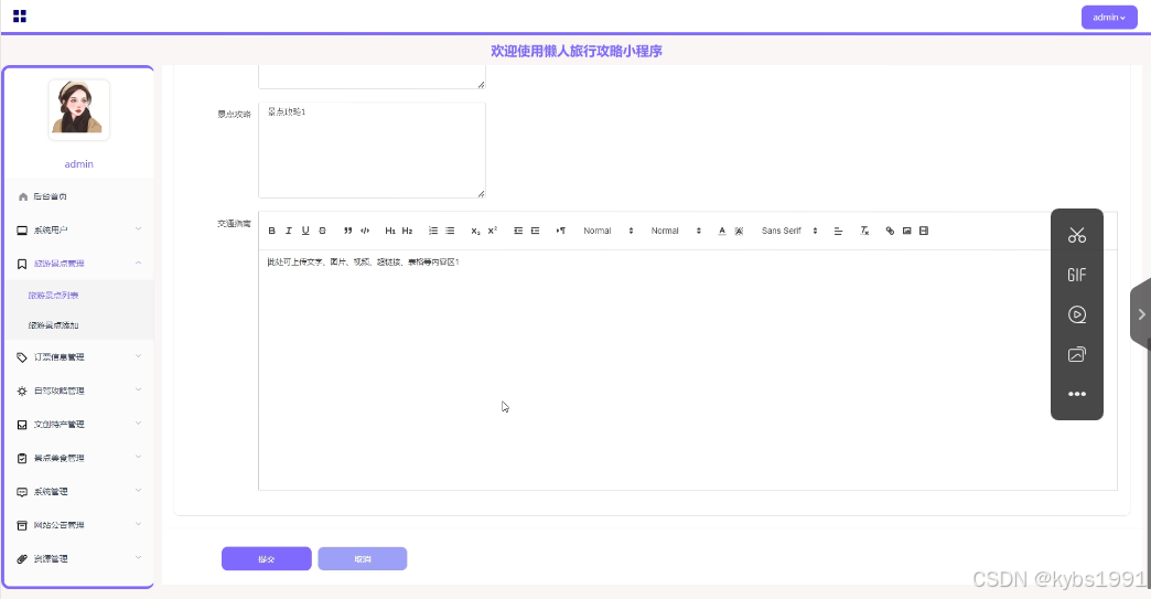 (10)资源管理:管理员可以对旅游资讯、分类列表进行增删查操作。