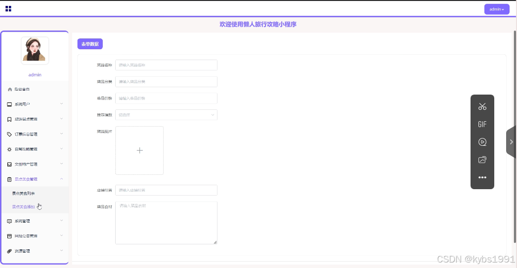 (7)景点美食管理:管理员可以查看景点美食列表,也可以添加景点美食信息。