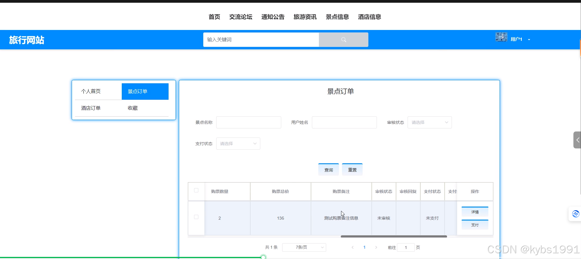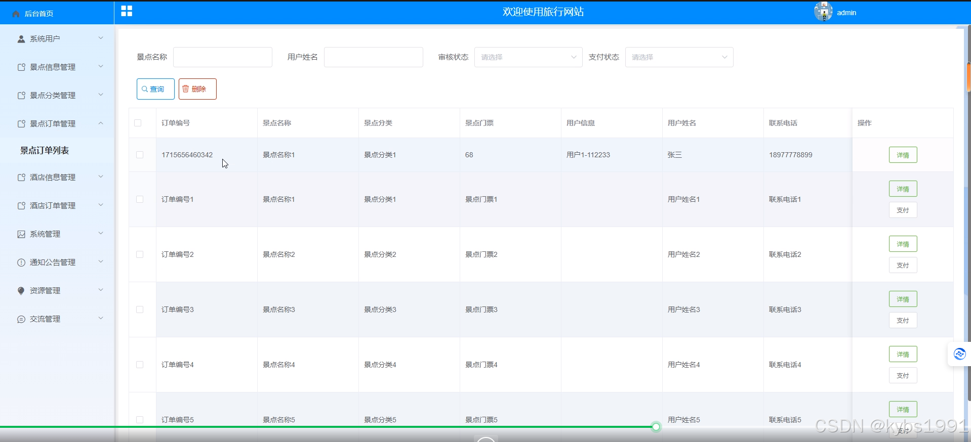 图5-12景点订单管理界面图