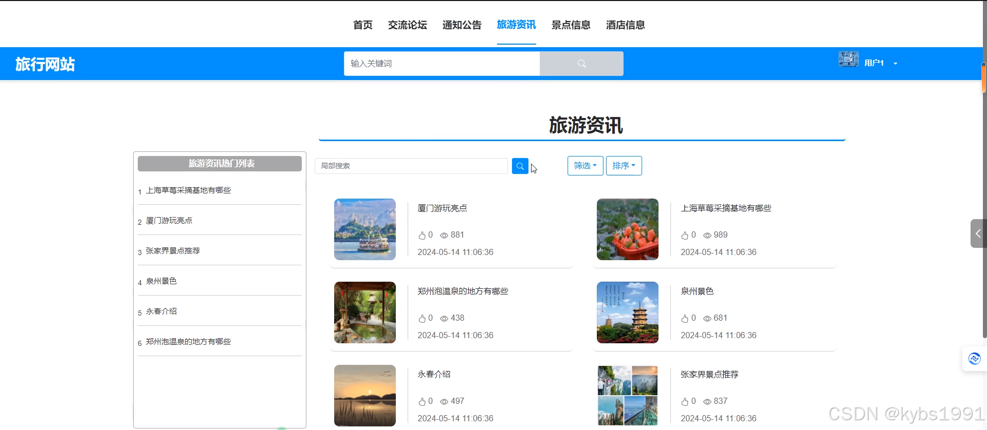 | 预期结果 | 可以查看到所有旅游资讯信息 |